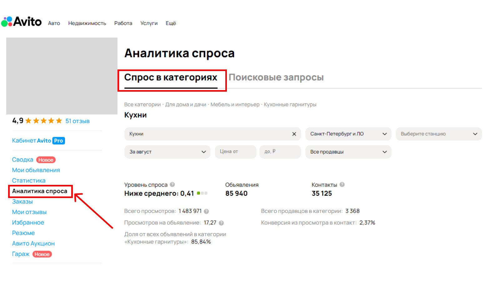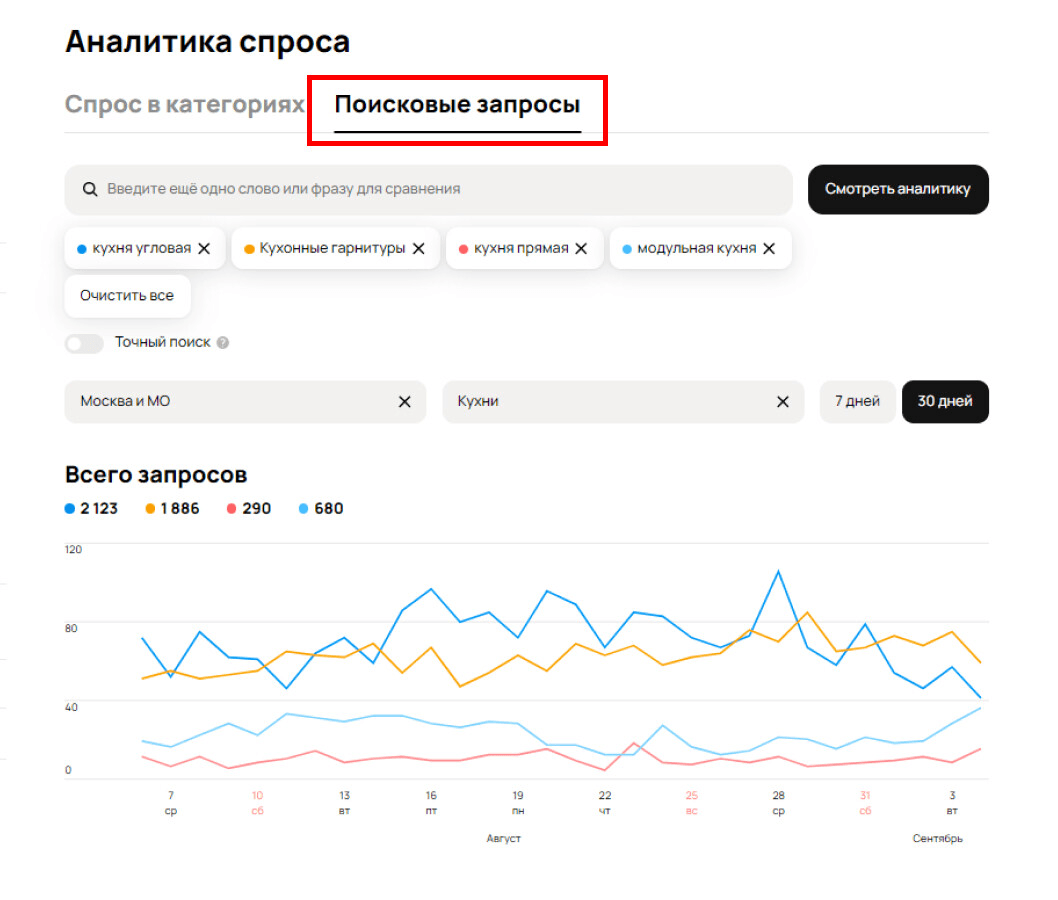 На платформе есть встроенный инструмент — «Аналитика спроса», который позволяет оценить: