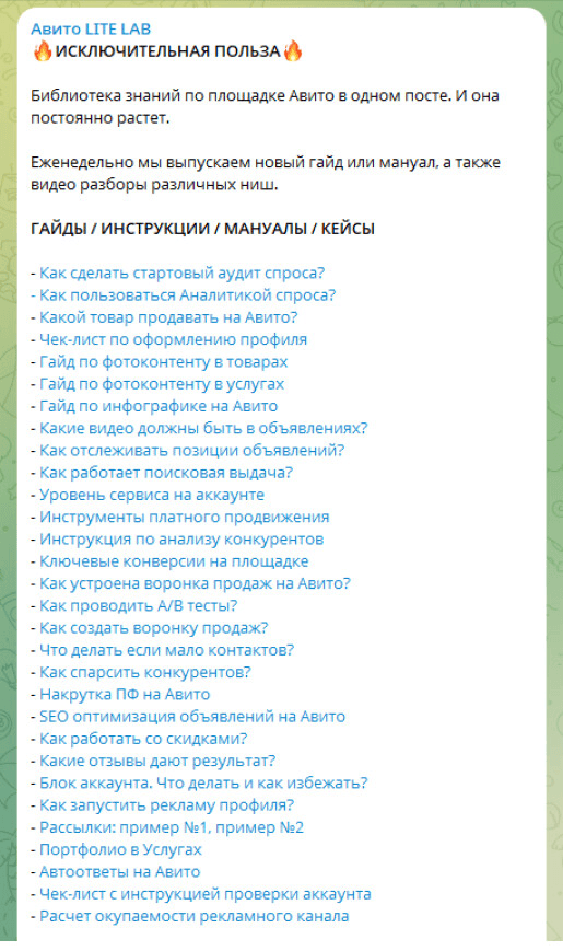 Агентство LiteLab Аgency - мы помогаем бизнесу увеличивать продажи на Авито. За последний год наша команда работала с 50+ различными нишами: в товарах, услугах, вакансиях. В своем телеграм канале пишем самое важное, что нужно знать при продвижении на Авито, делимся кейсами и факапами агентства, создаем гайды, чек листы и шаблоны для работы с площадкой.