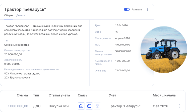 Также упрощается контроль оплат. Если актив купили в рассрочку, бизнес видит остаток долга и учитывает его в отчетах.