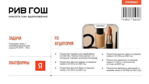 В First Data обратилась сеть магазинов парфюмерии и косметики «РИВ ГОШ» с запросом выйти на CPO (стоимость привлечения покупателя) в 750 рублей.