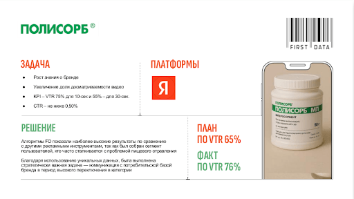 Другой кейс из практики First Data — продвижение сорбента «Полисорб».