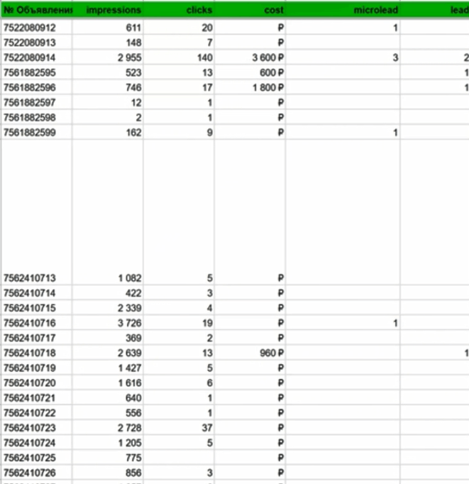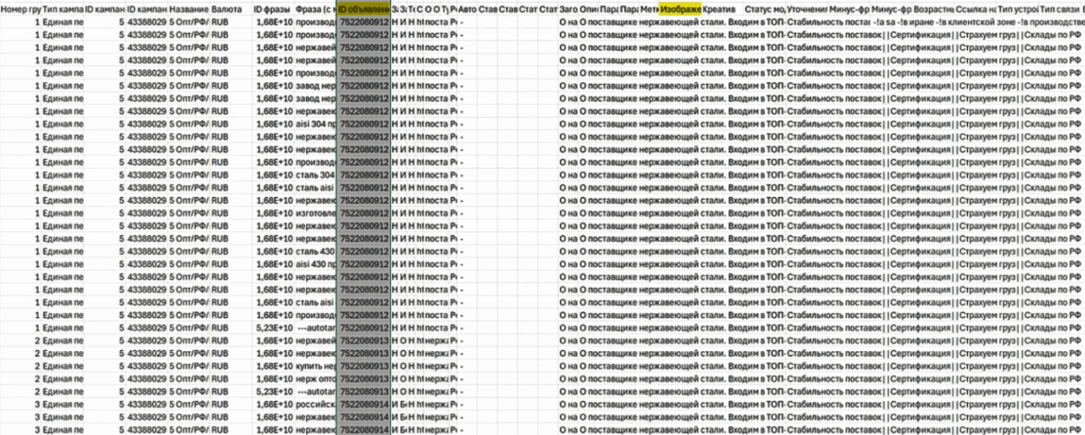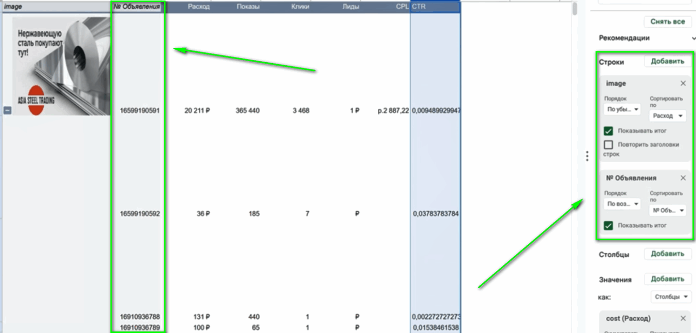 Дополнительно при анализе можем вывести номер объявления наверх. Это нужно, чтобы понять, в какую кампанию нужно провалиться и там сделать правки.