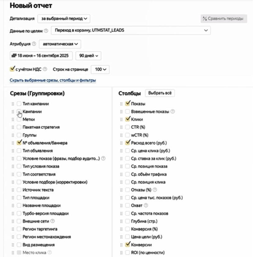 Давайте расскажу, как сделать такой же отчёт до баннеров в Яндекс Директ, как у меня.
