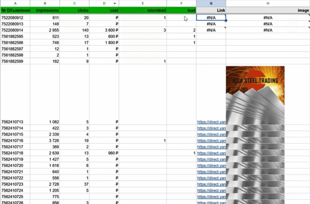 Теперь нам нужно дополнить выгрузку из Яндекс Директ, сделав вот эти два столбца.
