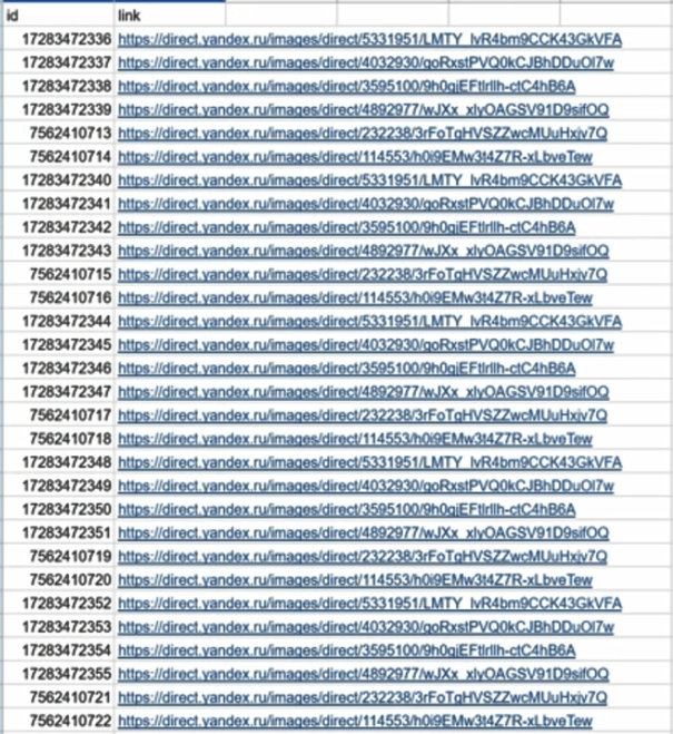 Тут много параметров, много столбцов. Нас из всей этой массой интересует только ID объявления и изображения. Можем оставить ещё заголовок и текст, если нужно построить отчёт ещё и по этим данным. Но базово для картинок нам нужны только два столбца.