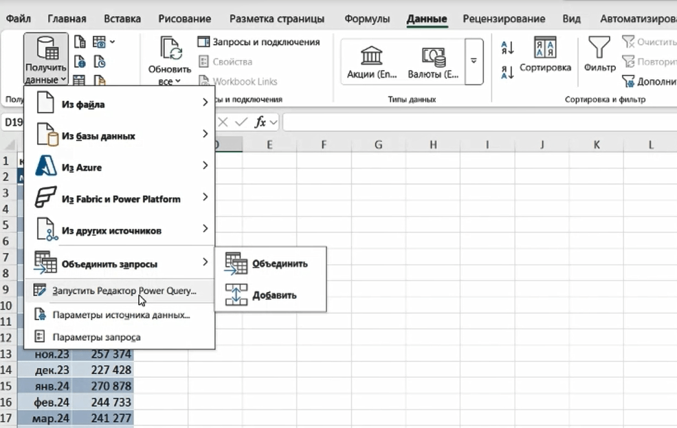 И вот связка, где у нас есть источники наши, которыми мы подключились с помощью Power Query: