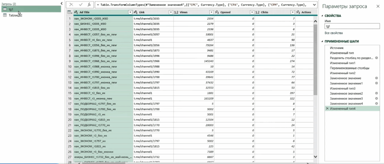 Всем привет! Сегодня хочу вам показать, как можно делать запуск в Telegram Ads с помощью эксельки и выгрузок, построения сводных на основе этих выгрузок с помощью справочной таблицы и Power Query. Можно и без Power Query, просто на основе сводной.
