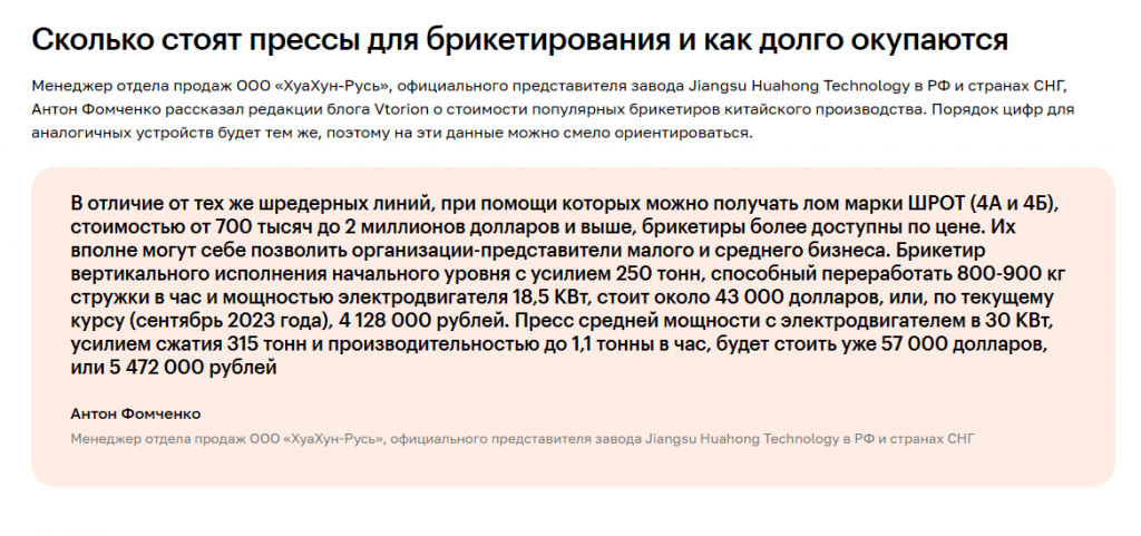Для блога Vtorion — маркетплейса вторичного сырья — мы написали больше десятка гайдов в сложной нише — ломозаготовке. Писали статьи на тему приемки и сдачи черного лома, рассказывали о новостях, тонкостях законодательства: