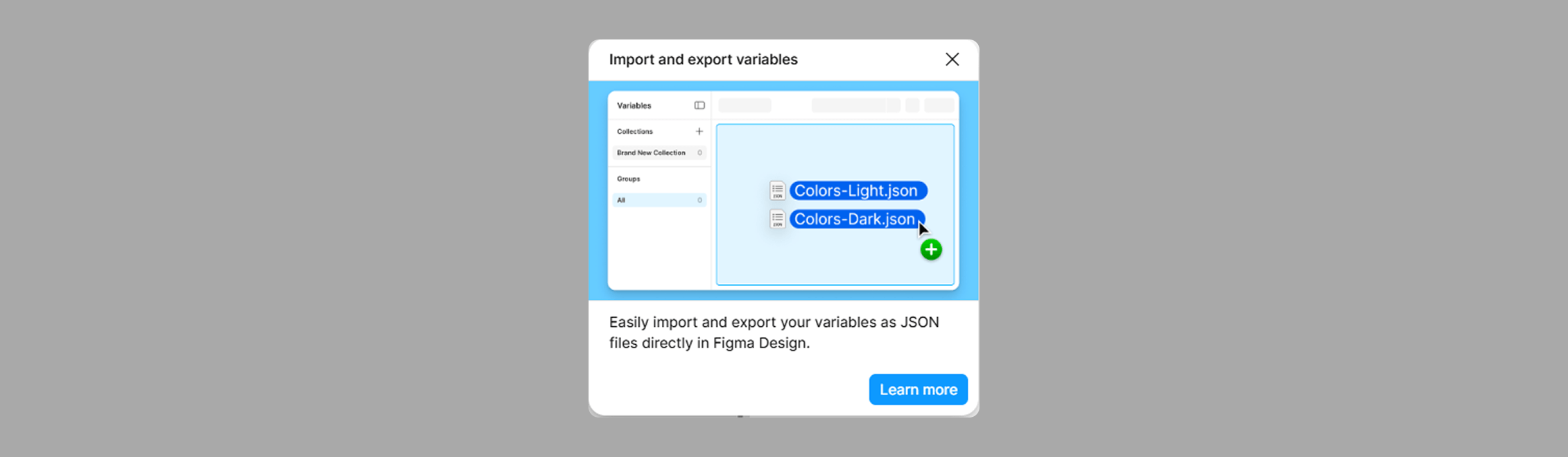 Figma, должно быть, заметила, что для импорта и экспорта переменных дизайнерами было создано множество плагинов, таких как Export/Import Variables plugin, поэтому теперь они представили встроенную функцию для этой цели.