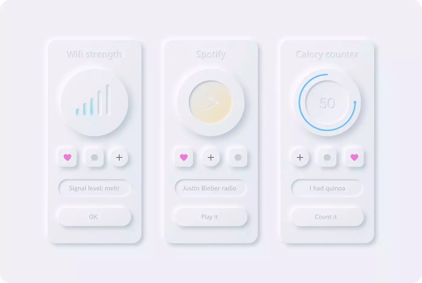 Полупрозрачные тени и мягкие кнопки выглядели свежо на концептах, но быстро показали слабые стороны. Главная проблема — низкий контраст. Согласно стандартам WCAG, элементы интерфейса должны иметь достаточный контраст, чтобы обеспечить читаемость и доступность. В нейроморфизме кнопки и поля нередко «тонут» в фоне, из-за чего пользователи просто не понимают, что кликабельно, а что нет.
