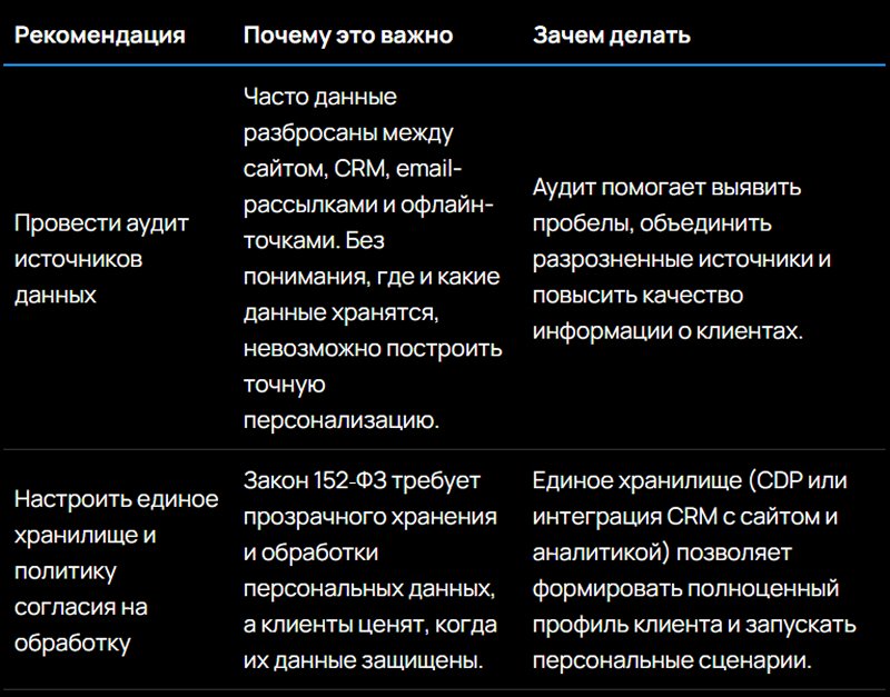 Используя собственные данные, компания может адаптировать контент под поведение клиента.