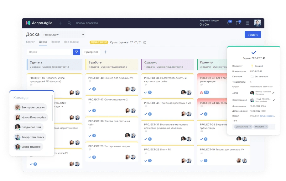 Аспро.Agile — планировщик для команд, которые работают по Scrum и Kanban. Подойдет продуктовым и проектным командам, где важны спринты, оценка и контроль WIP.