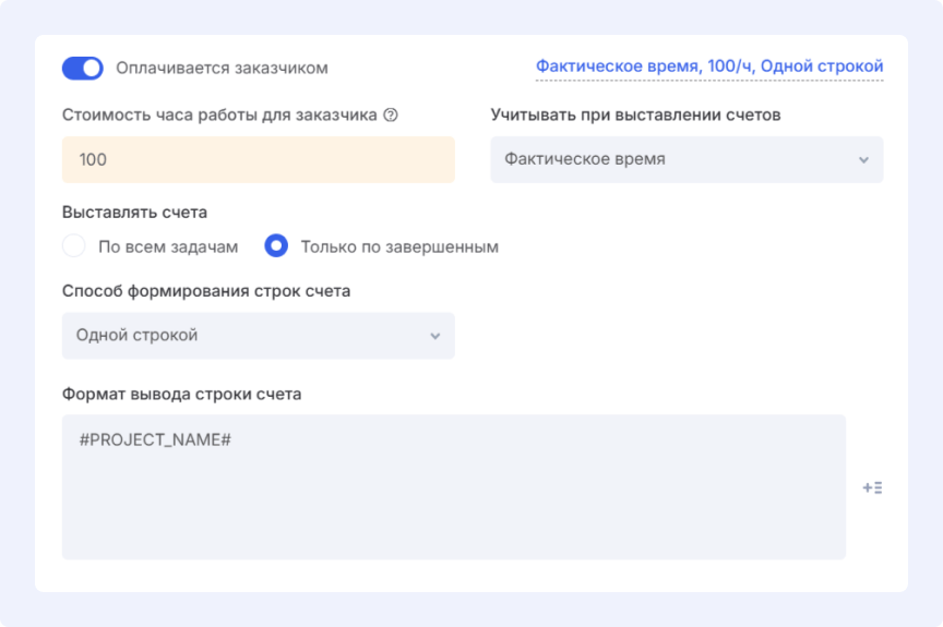 Современные digital-проекты редко укладываются в один шаблон. В рамках одного заказа могут быть задачи с фиксированной стоимостью, почасовой оплатой и комбинированными схемами. Поэтому важно иметь возможность гибко настраивать принципы расчета.