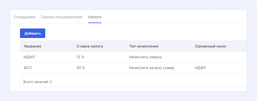 Налоговые расчеты — еще одна головная боль при почасовой оплате. Система автоматически рассчитывает все налоги согласно вашим настройкам: может начислять налог сверху основной суммы или включать его в общую стоимость, учитывать несколько видов налогов с правильной последовательностью расчета.