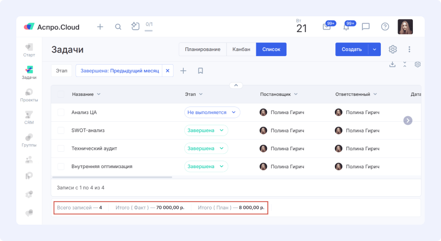 Проекты расползаются по чатам и таблицам? Соберите их в одном месте в Аспро.Cloud и управляйте легко. Попробуйте бесплатно 14 дней.