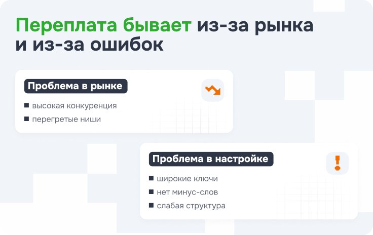 Если коротко – и в том, и в другом. Переплата за клик в Директе действительно бывает, особенно когда кампания собрана на скорую руку: ключи слишком широкие, сегменты перемешаны, минус-слов почти нет, а стратегия запущена без контроля. В такой связке Директ быстро начинает расходовать бюджет на все подряд, и цена привлечения растет буквально на глазах.