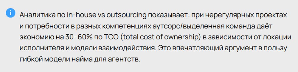 Но для многих агентств модель аутсорса предлагает гораздо больше преимуществ: экономия, масштабируемость и снижение операционных рисков.