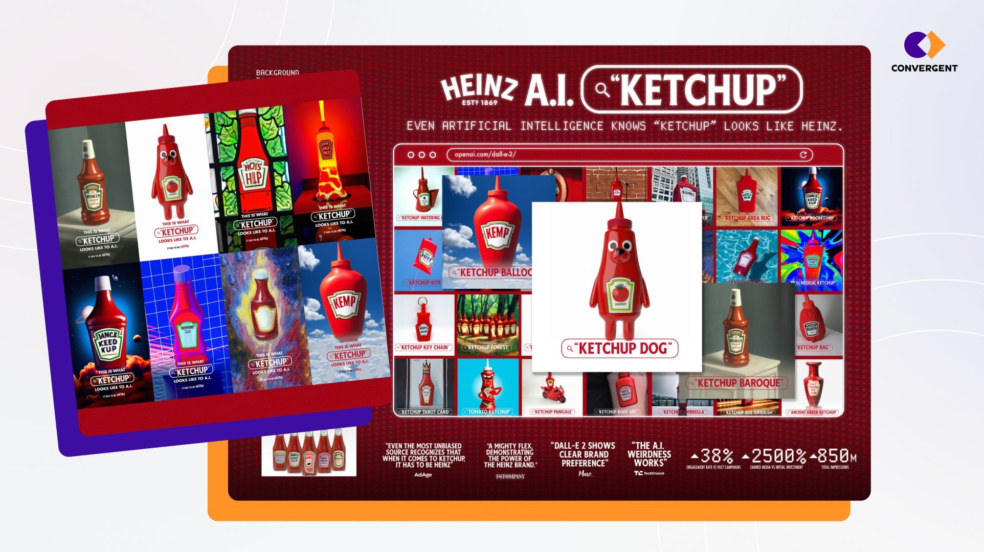 Бренд Heinz провел кампанию с использованием нейросети DALL·E, попросив её нарисовать «как выглядит кетчуп». Итоговые изображения, хотя и были далеки от безупречного исполнения, неизменно напоминали продукты бренда. Это стало главным инсайтом — Heinz настолько прочно закрепился в восприятии аудитории, что даже алгоритмы взяли его визуалы за эталон.