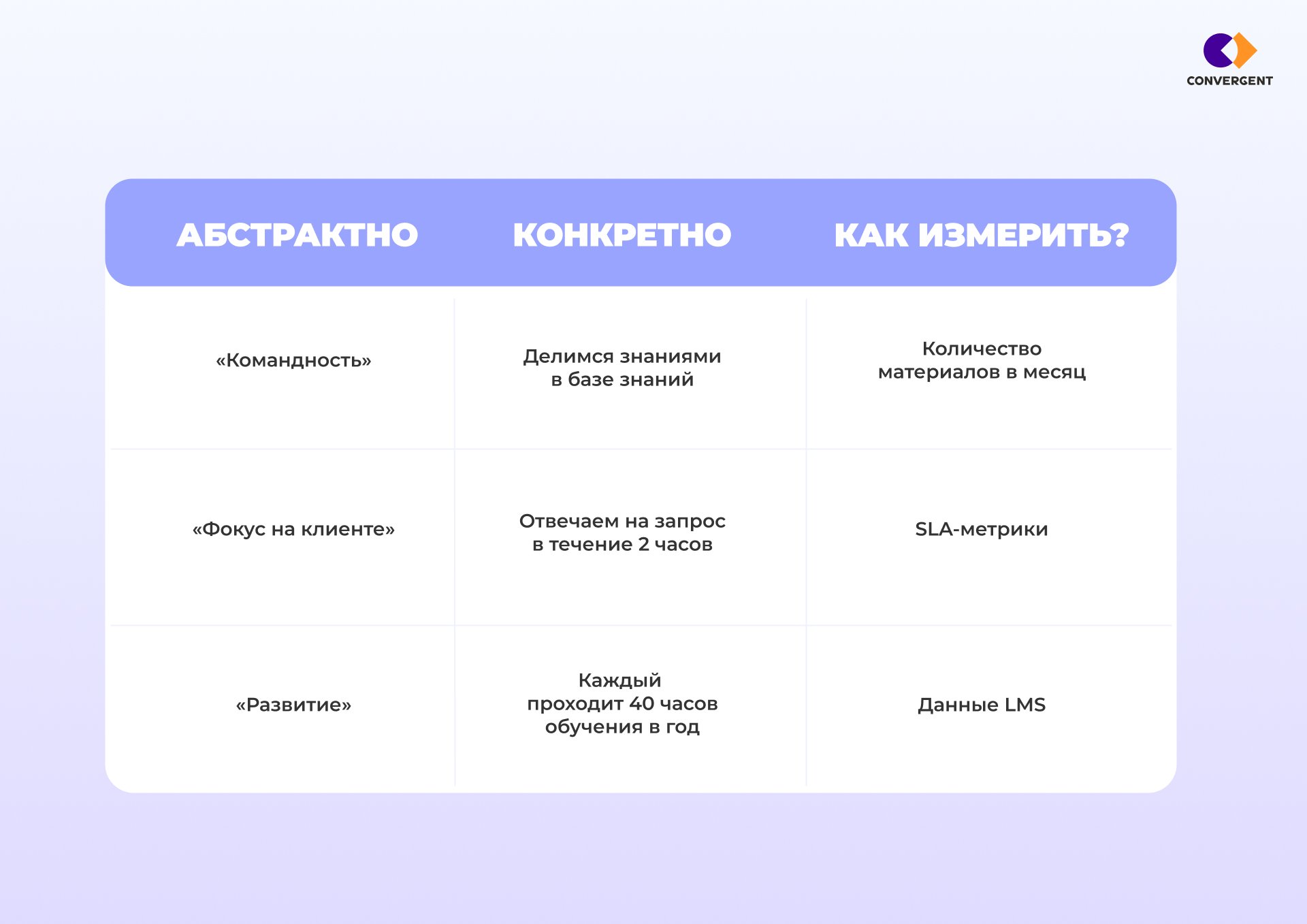 Примеры корпоративных ценностей и их трансформации в измеримое поведение: