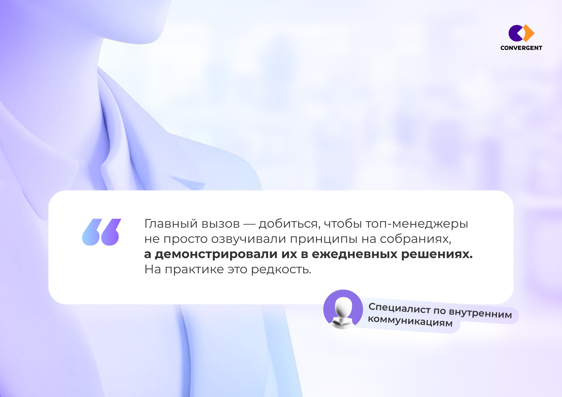 В практике Convergent мы поэтому всегда настаиваем на том, чтобы диагностика начиналась не с интервью с руководителя, а с анализа того, что реально происходит в каналах коммуникации и как сотрудники описывают свой опыт.