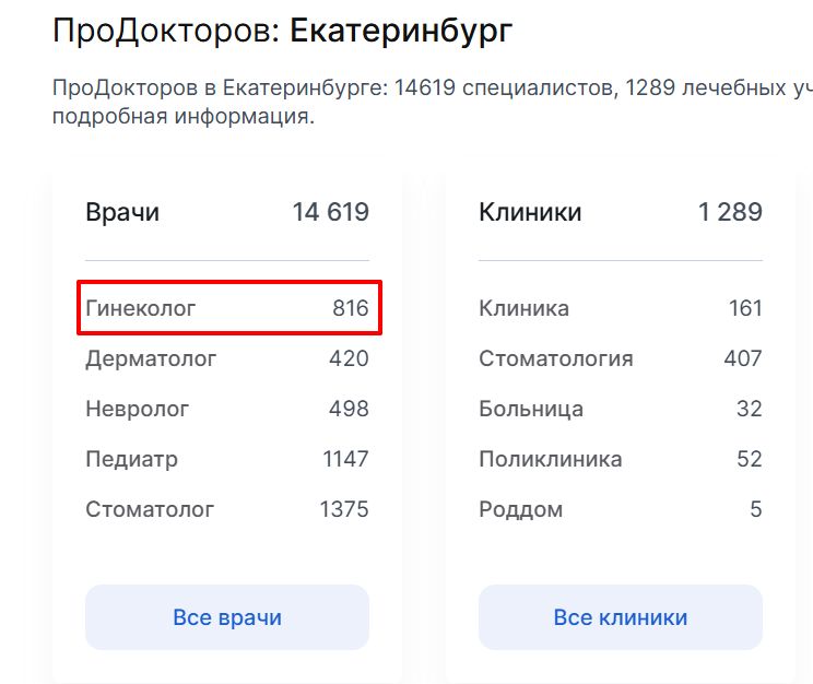 Для этого смотрим кол-во врачей по данному направлению в городе, регионе из популярного агрегатора (например Продокторов).