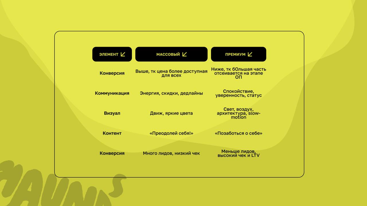 Главная задача премиума — не продать карту, а пригласить человека в сообщество. В мир, где фитнес — это атмосфера, совершенно особенный вайб и островок релакса.