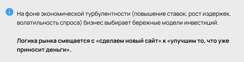 Запуск нового сайта представляет собой ставку на долгосрочный рост и масштабирование. Но в период кризиса, когда покупатели становятся более избирательными, бюджеты могут быть ограничены, риски выше, разумнее вкладываться в оптимизацию, а не в перезапуск.