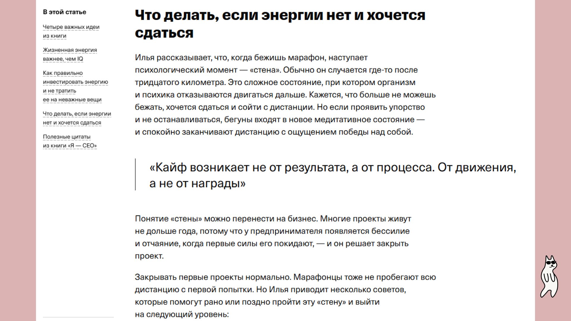 Во время работы в БС я пару раз соприкасалась с Ильей Кретовым, который тогда был руководителем eCommerce Т-Банка. Ну, сначала делала обзор на его книгу «Я — CEO» еще про времена eBay в России. А потом уже лично брала интервью про то, как руководитель передаёт свою энергию команде. Правда, это было перед самым моим уходом, так что писали колонку по нашей записи уже мои коллеги.
