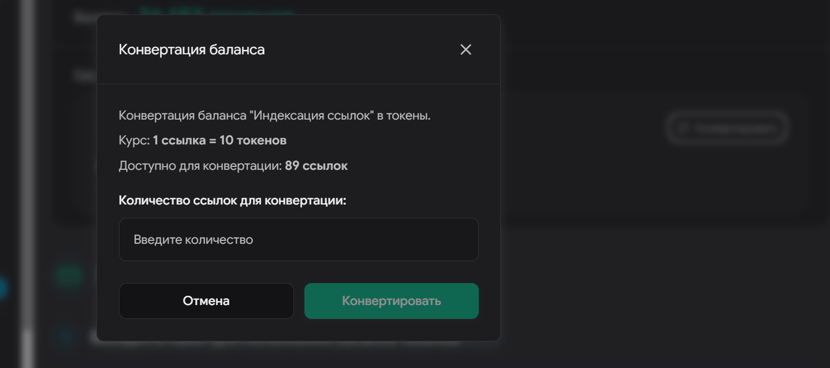 Если у вас есть баланс ссылок в боте, вы можете конвертировать его в токены: