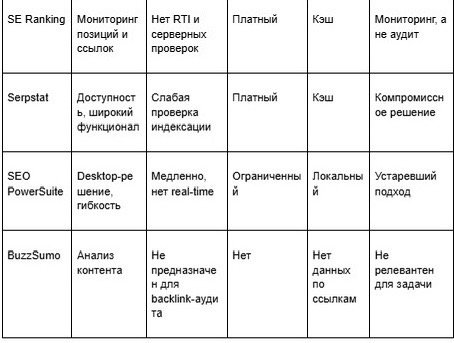 Ключевой вывод: Большинство инструментов работают с кэшированными данными и плюсом они ориентированы на поиск и аналитику, а не на проверку