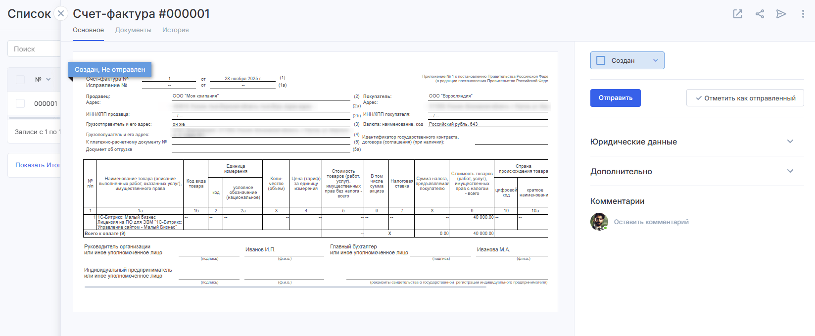 Создавайте счета-фактуры быстро и легко в Аспро.Финансы! Система автоматически заполняет реквизиты и проводит проверку корректности документа. Попробуйте бесплатно в пробном периоде в течение 14 дней.