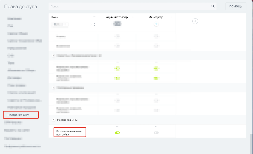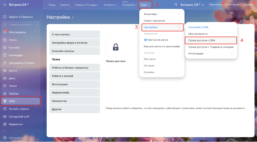 Изображение 1 – Настройка прав доступа к CRM