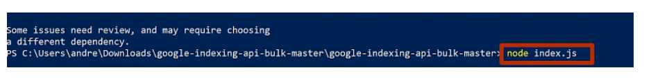 10. После возвращаемся в Windows PowerShell и вводим команду node index.js