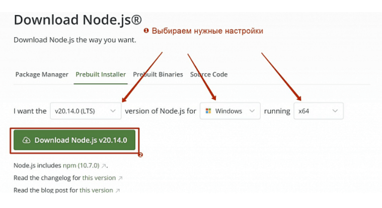 2. Теперь устанавливаем библиотеку node.js, которая будет принимать запросы по ссылке (нужно скачать и установить).