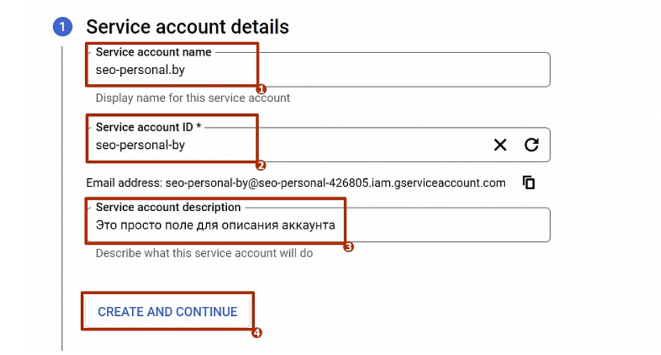 2. Создаём там новый сервисный аккаунт (для каждого сайта - создается отдельный).