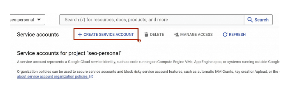 6. И создаем сервисный аккаунт, нажав на "+ Create service account"