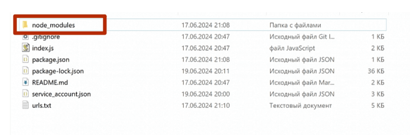 8. Подтверждением успешного выполнения команд станет появление папки "node_modules" в основной папке