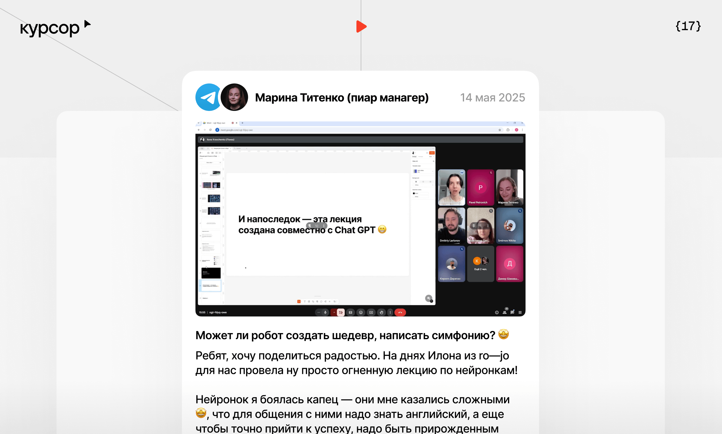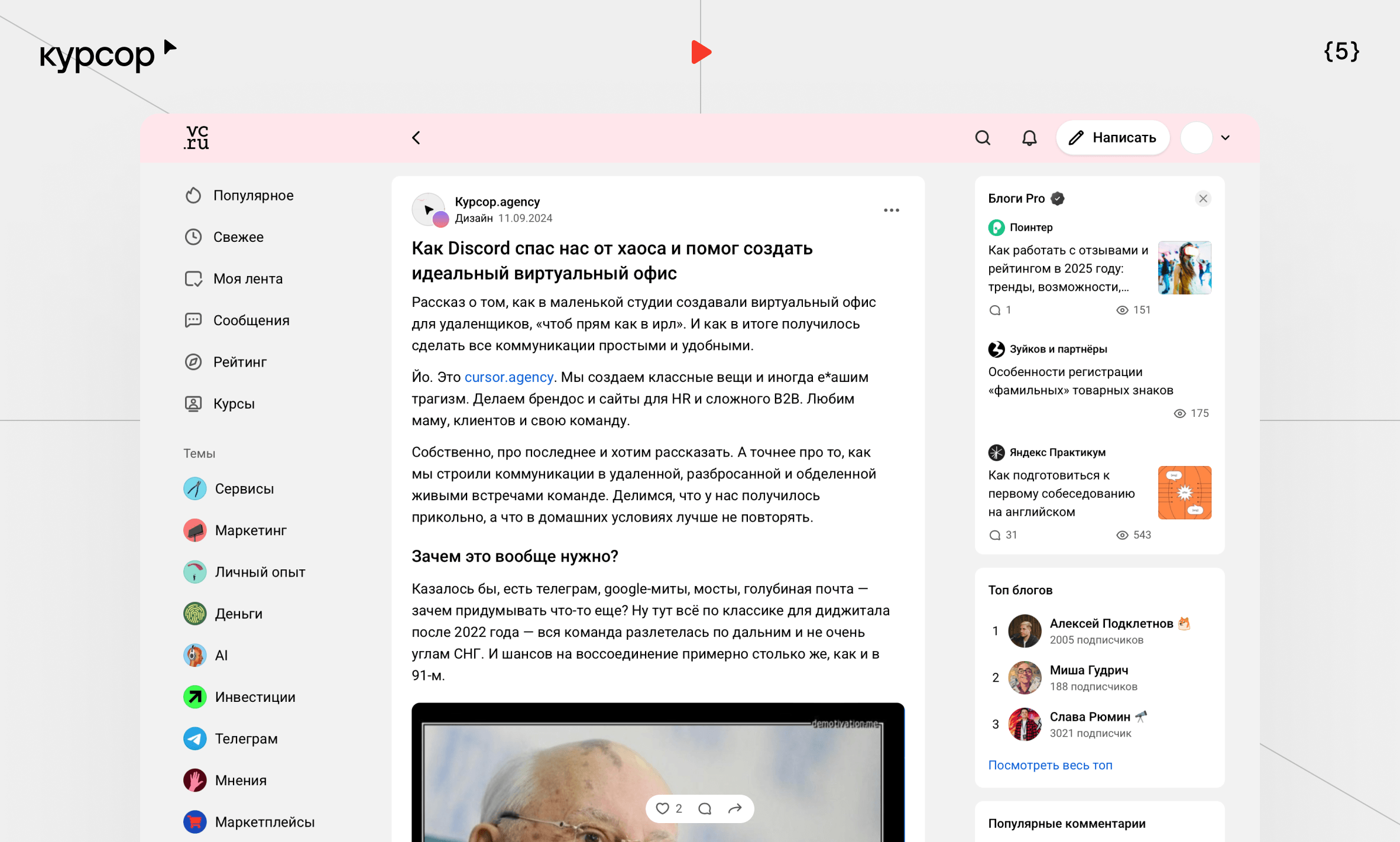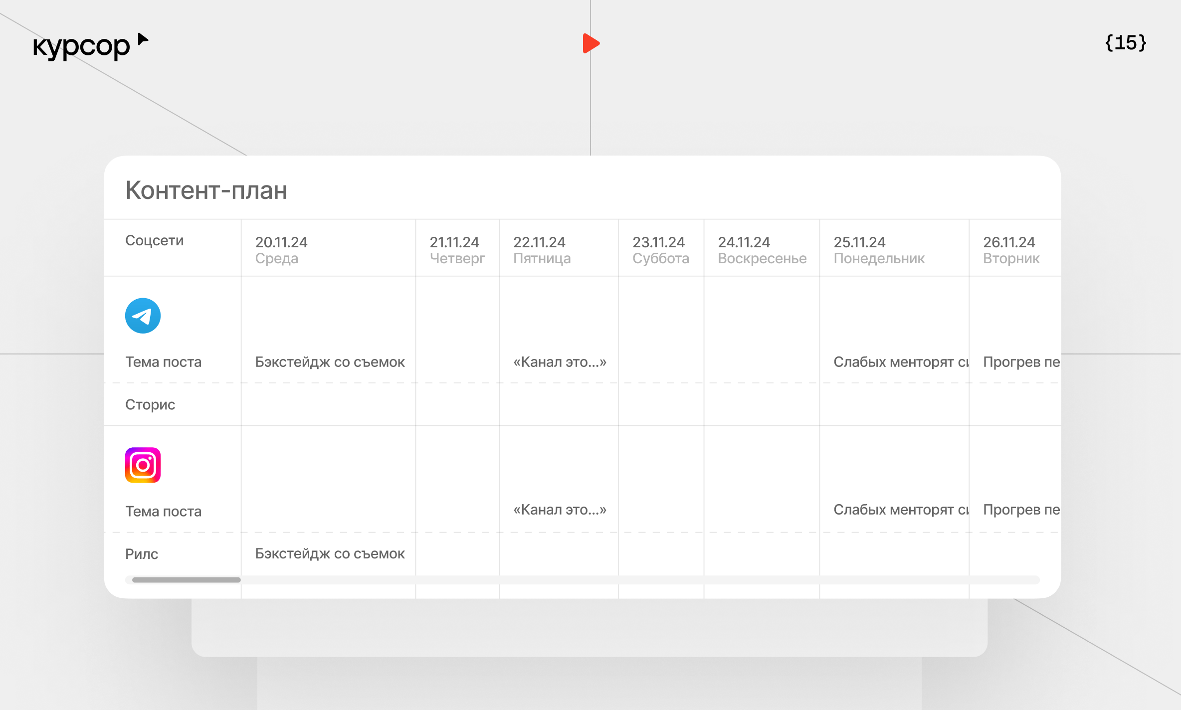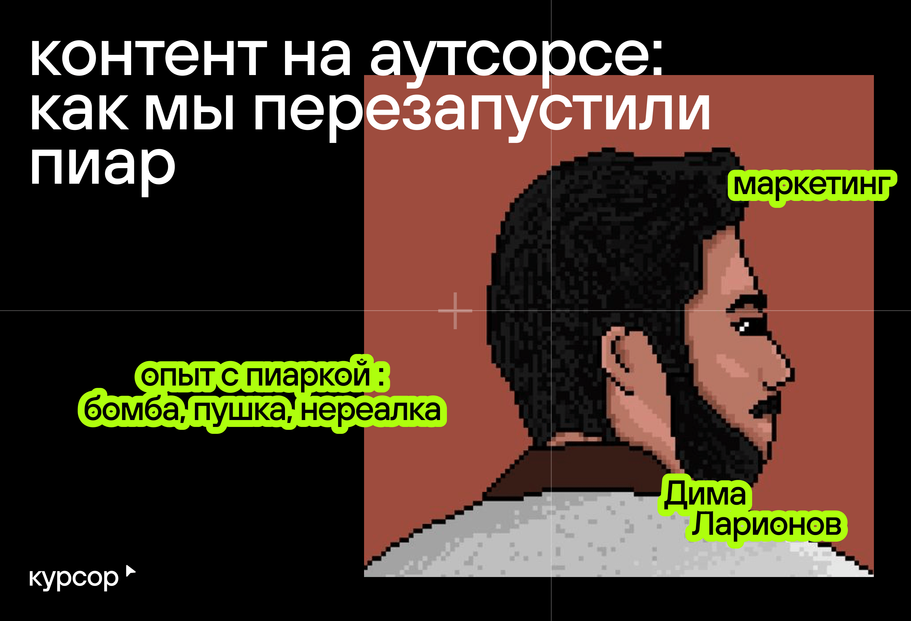 Привет! У аппарата Дима Ларионов, фаундер Курсор.agency. Ещё год назад у нас не было маркетинга вообще. А потом мы поучаствовали в реалити для бизнеса Качалка (это отдельная история), просекли важность маркетинга и купили поддержку у контентщиков из Пиарки. Полгода ребята выстраивали у нас процессы, а потом отпустили в свободное плавание, ведь теперь мы умеем пилить контент сами.