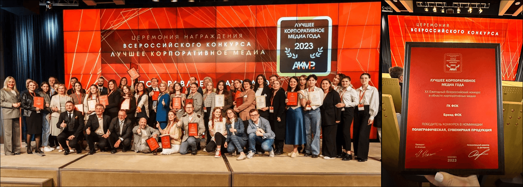 Результат сотрулничества получился грандиозный: в 2023 году ГК ФСК стала победителем Всероссийской премии “Лучшее корпоративное медиа-2023” АКМР в номинации «Полиграфическая и сувенирная продукция».