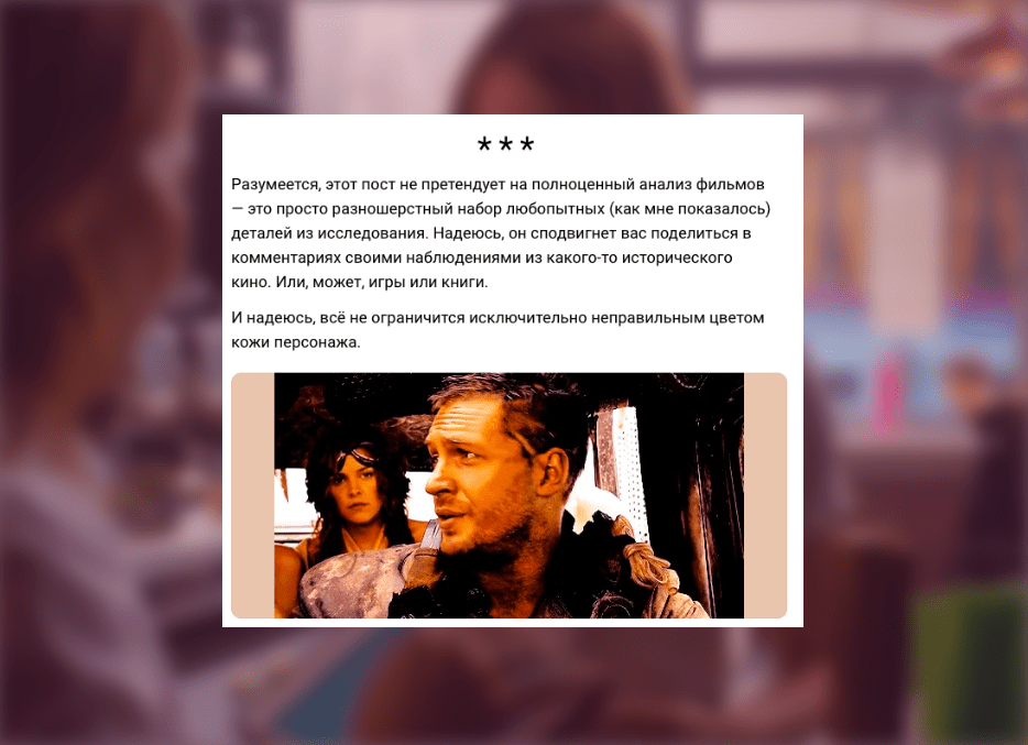 Обычно первое, что человек видит в ленте – обложка поста. Затем взгляд идет на заголовок, и уже в самом конце переходит на так называемый "лид-абзац" – кусочек текста, который выводится вместе с картинкой.