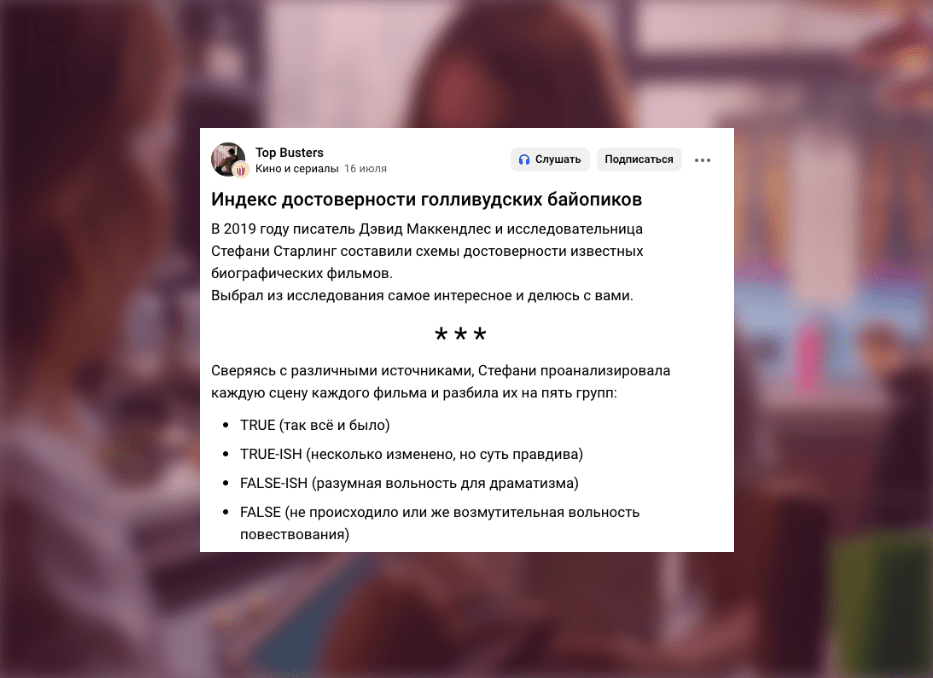 Пример критики. Что значит "Индекс достоверности голливудских байопиков"? Статья и есть этот индекс? Или статья про этот индекс? Если ты выбрал кусок из исследования, почему не сказал об этом в заголовке, а-ля "8 примеров достоверности байопиков". Боже, я уже 2 абазаца прочитал и все еще не вижу этого индекса, авторы, ты его выдумал? типичный хейтер