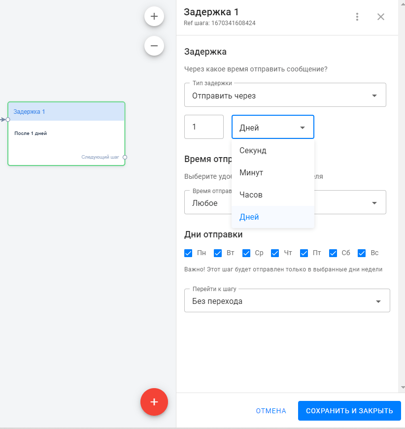 Здесь можно установить через какое время будет отправлено следующее сообщение.