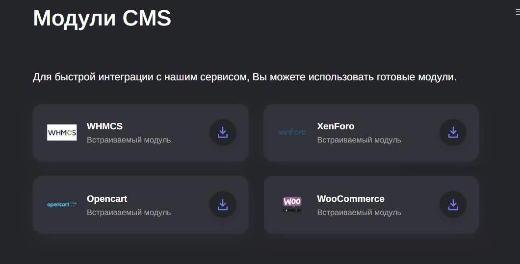 С Morune вам не нужно быть техническим гуру, чтобы начать принимать платежи. Платформа предлагает простое и интуитивно понятное подключение. Вы можете использовать API или воспользоваться готовыми модулями для популярных систем управления контентом, таких как XenForo, WooCommerce, WHMCS, BILLmanager и Opencart. Интегрируйте Morune в вашу текущую инфраструктуру без лишних сложностей!