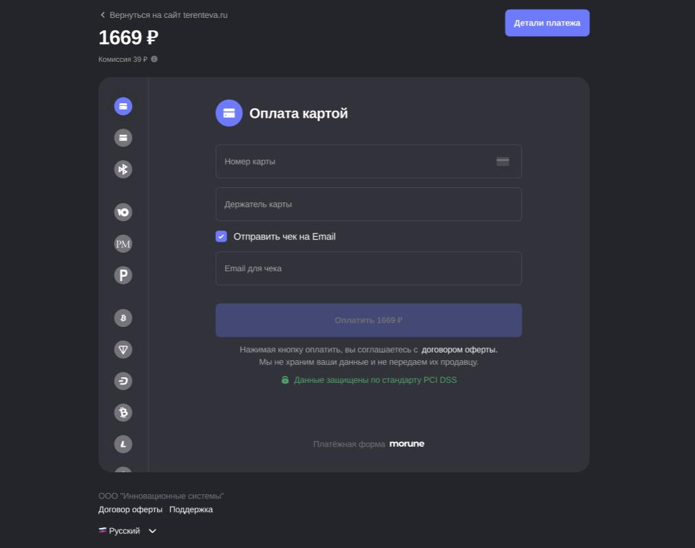 - Morune — платформа, которая умеет принимать иностранные карты и позволяет обрабатывать международные транзакции.