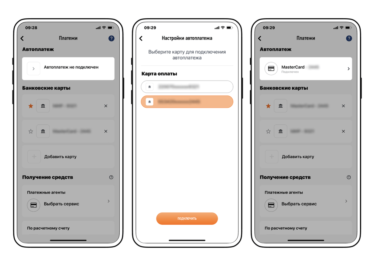 Для оплаты привяжите карту и при желании настройте автоплатёж — сумма будет списываться автоматически каждый месяц. Карту можно отвязать в любой момент.