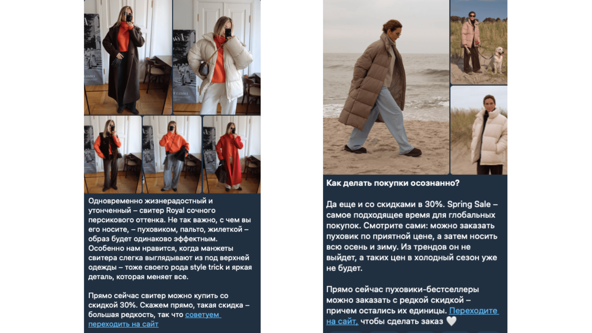 Копирование популярных трендов без адаптации под бизнес считается не только неэффективной затеей, так еще и может понизить охваты и повлечь отписки. Дело в том, что когда канал наполняется контентом, который не соответствует тематике бренда, или копирует бездумно чужие идеи это не привлекает целевую аудиторию. На таком контенте далеко не уедешь, ведь теряется оригинальность бренда и ценности, которые он доносит.