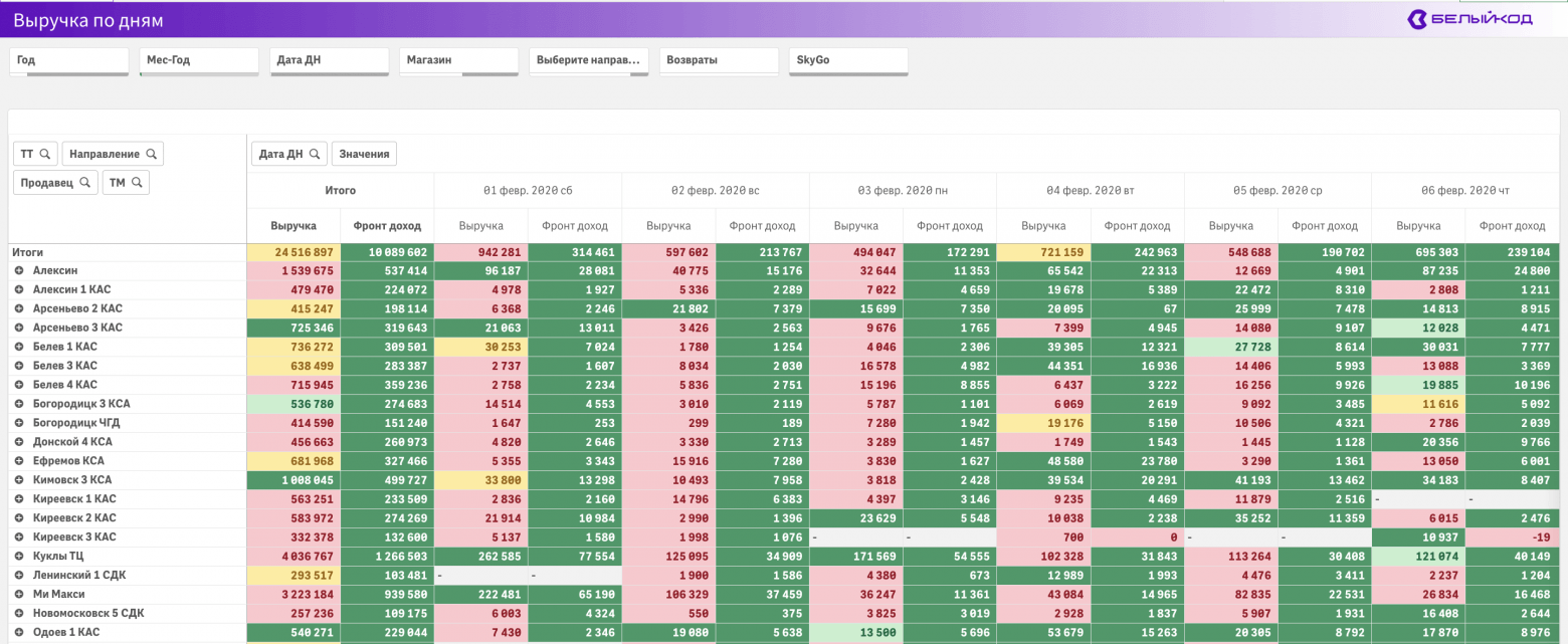 Первыми клиентами были розничные сети. И тут мы столкнулись со сложностью: руководители, и владельцы не понимали, какие показатели и в каких разрезах им требуется анализировать. Так, мы пришли к готовым наборам дашбордов под каждый отдел.