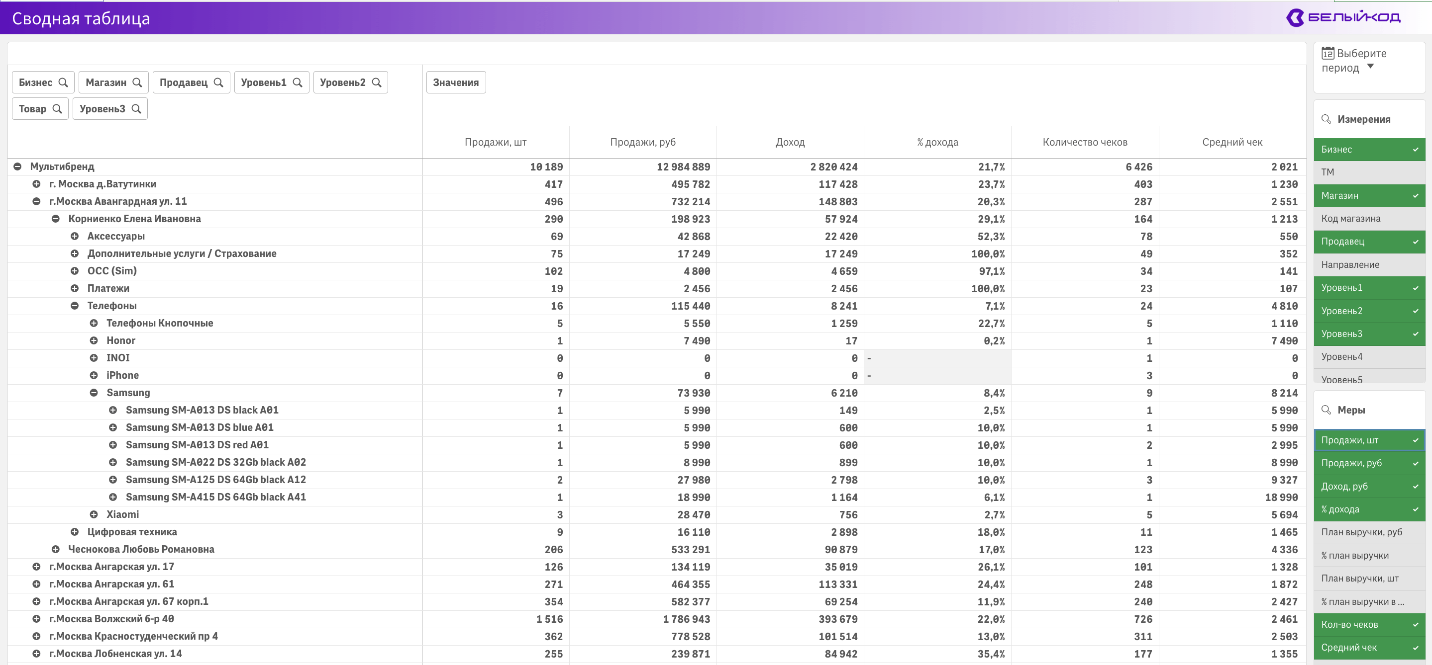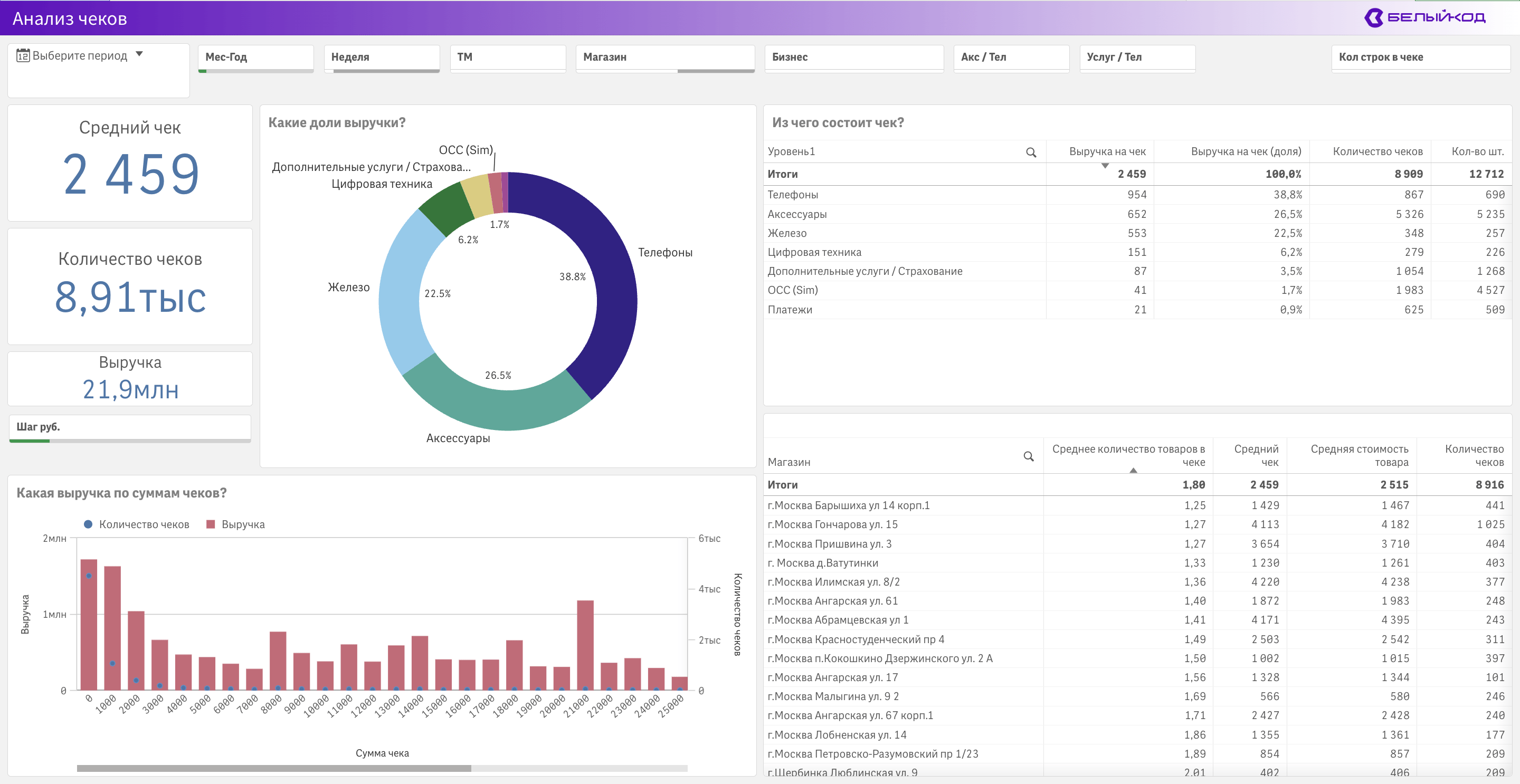 Базовый и самый популярный набор сегодня используются более 45 розничных сетей. Это анализ коммерческих показателей. Этот набор закрывает 80% потребности для ежедневного анализа продаж сети.