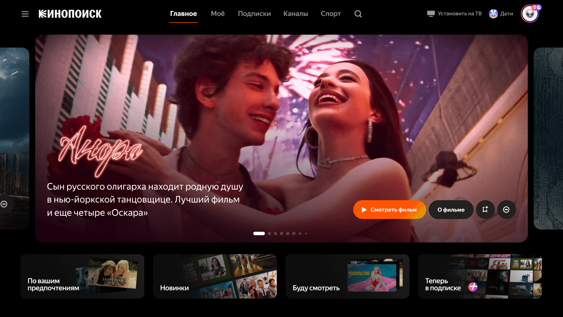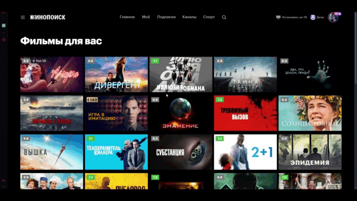 Здесь Кинопоиск старается подбирать контент, который понравится пользователю, на основе просмотренных фильмов и оставленных оценок.