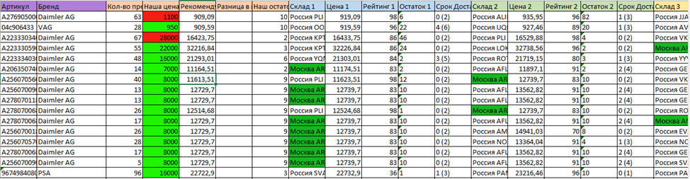 Также можно отслеживать обновление остатков и цен от поставщиков.